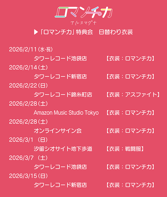 ■リリースイベント⽇程 2026/2/11(水・祝)タワーレコード池袋店